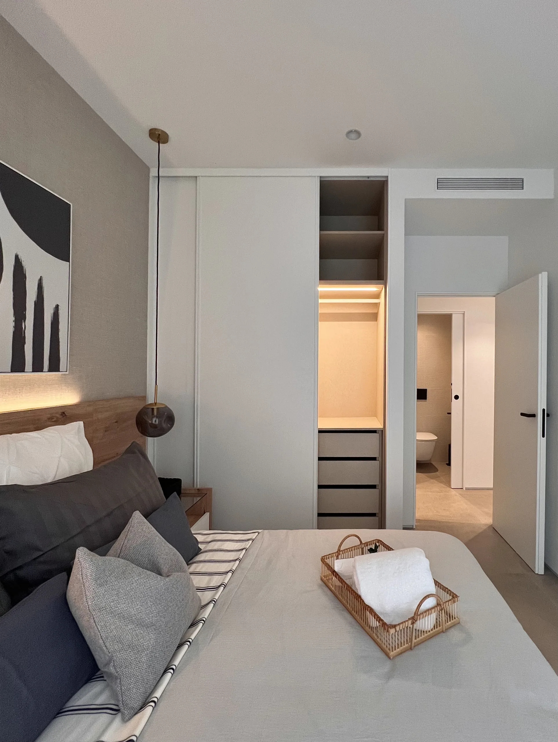 En el interior, la artesanía y la precisión técnica se encuentran: carpinterías de madera hechas a medida, iluminación integrada, armarios cuidados hasta el último detalle y materiales nobles que envejecen con belleza.