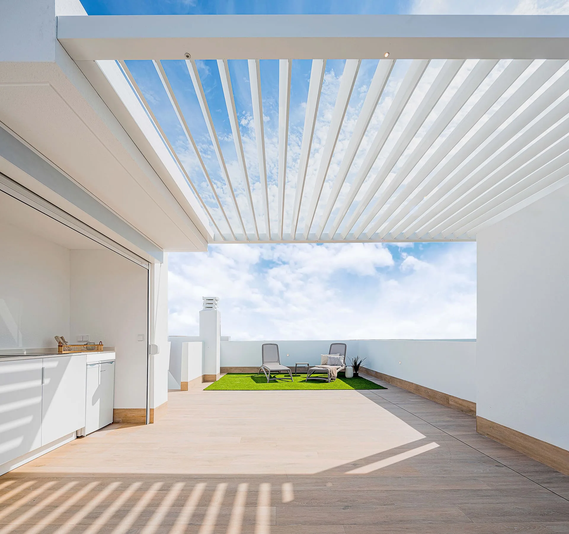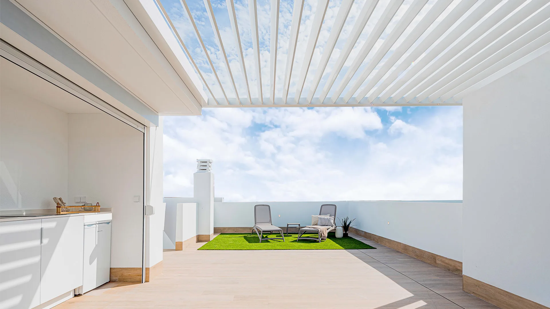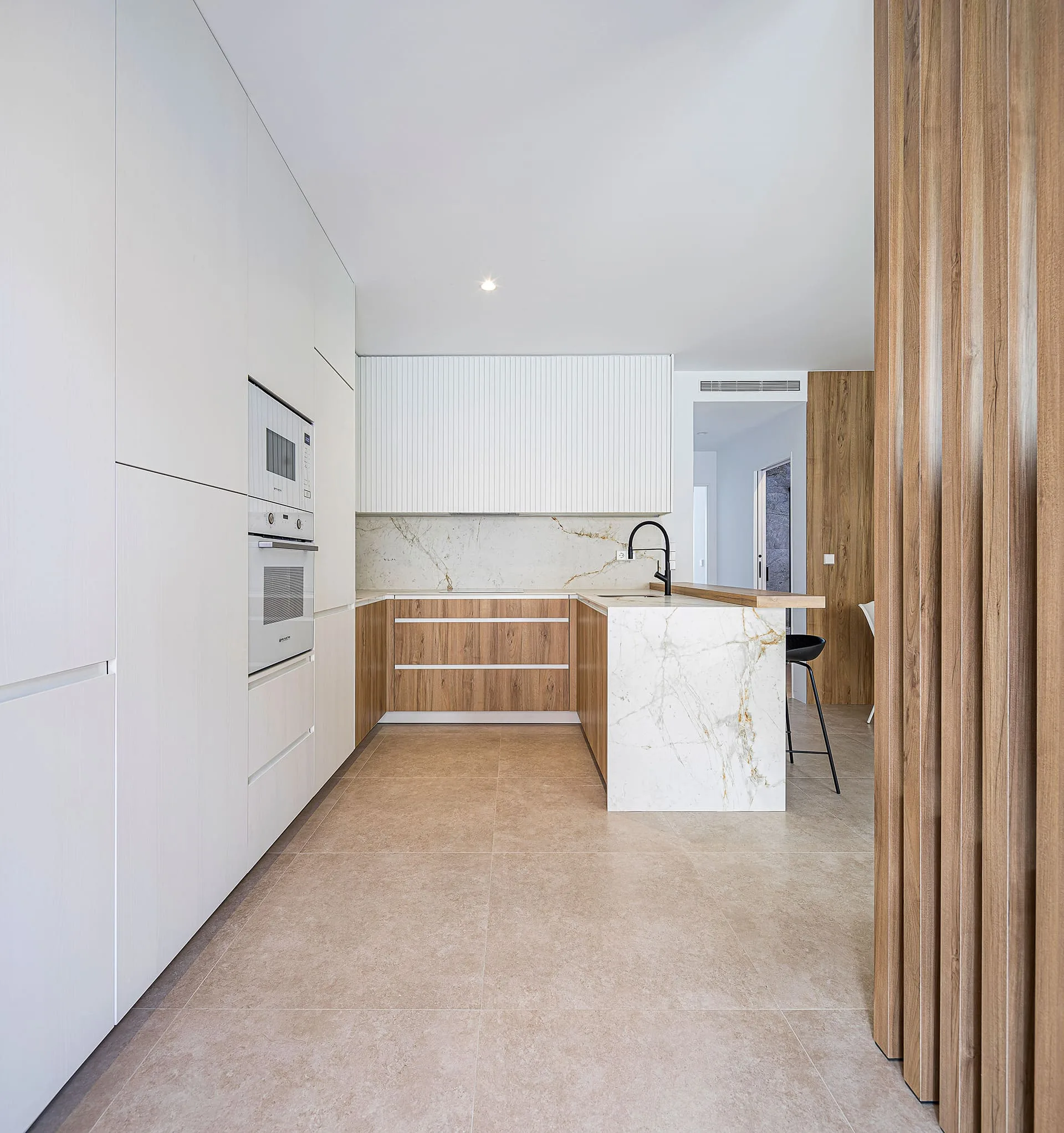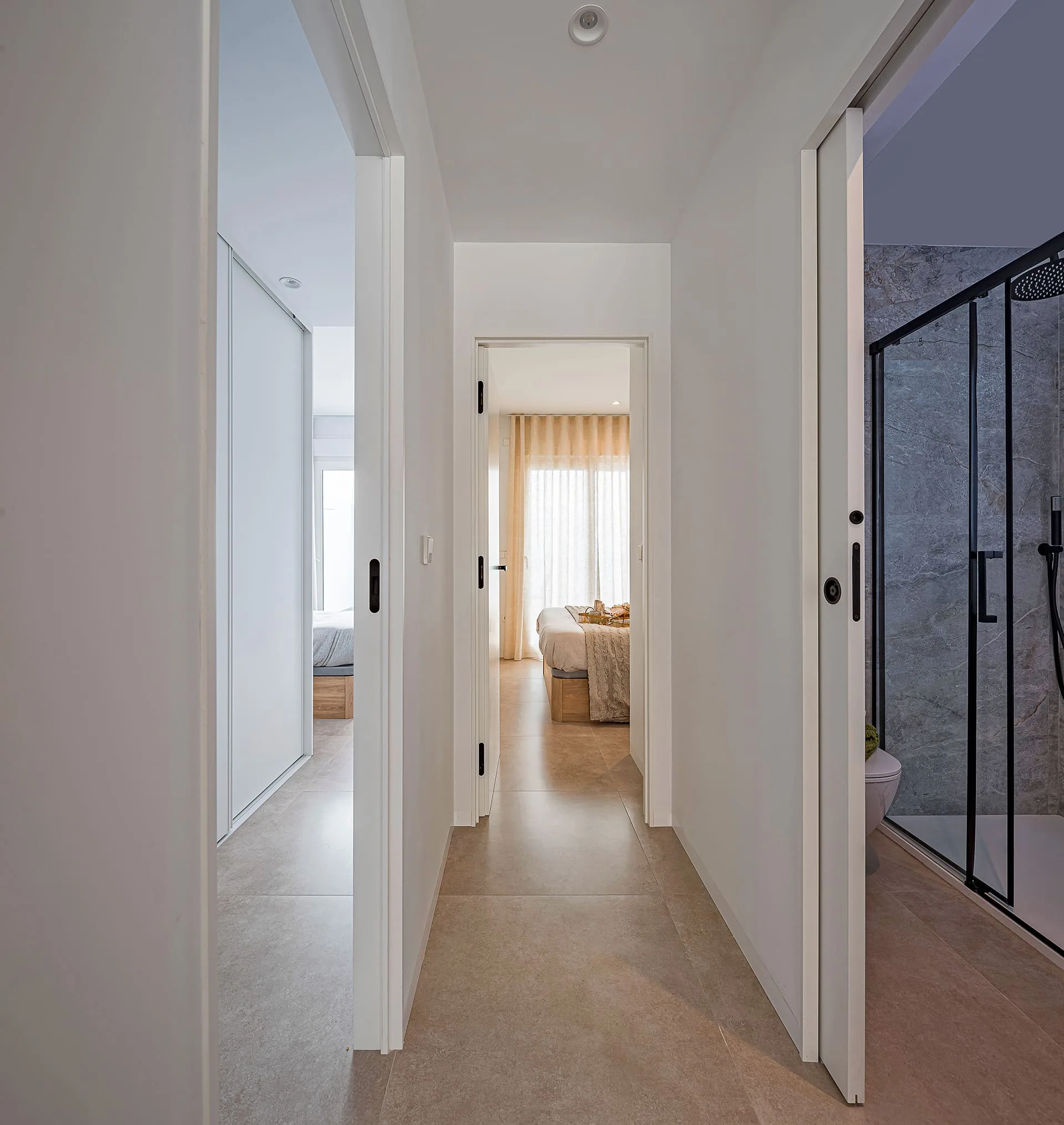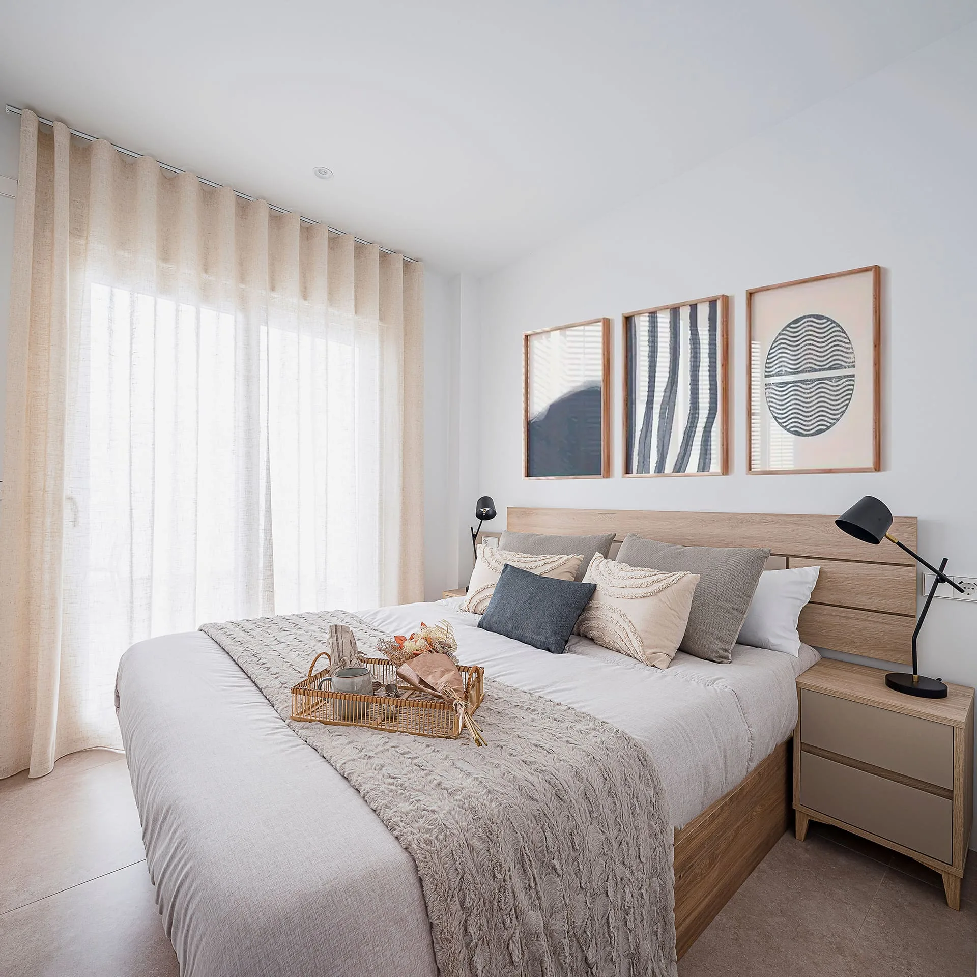 Cada apartamento ha sido concebido como un lugar donde la vida fluye: espacios que se abren al exterior, estancias bañadas en luz, materiales nobles y palillerías que proyectan sombras delicadas y elegantes.