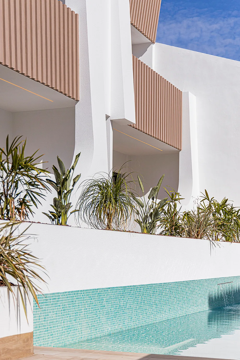 Residencial Lisboa es una declaración de intenciones: luz, calma y arquitectura mediterránea reinterpretada con un lenguaje limpio, atemporal y profundamente humano. Un conjunto íntimo de 12 viviendas donde la piedra, los blancos puros y la madera natural se funden con el paisaje creando un refugio que se siente vivo, cálido y orgánico.